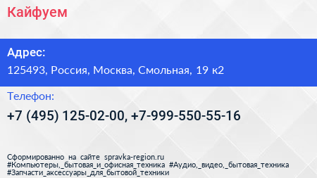 Кайфуем! по адресу 125493, Россия, Москва, Смольная, 19 к2 в дальнейшем Организация, размещена в следующих категориях: