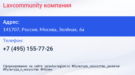 Lavcommunity, компания по адресу 141707, Россия, Москва, Зелёная, 6а в дальнейшем Организация, размещена в следующих категориях: