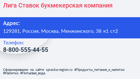 Лига Ставок, букмекерская компания по адресу 129281, Россия, Москва, Менжинского, 38 к1 ст2 в дальнейшем Организация, размещена в следующих категориях: