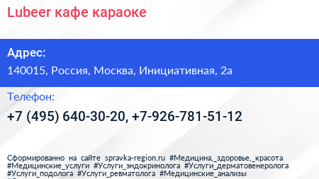 Lubeer, кафе-караоке по адресу 140015, Россия, Москва, Инициативная, 2а в дальнейшем Организация, размещена в следующих категориях: