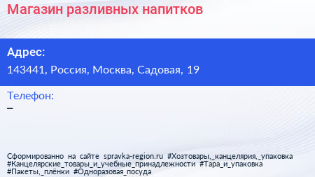 Магазин разливных напитков по адресу 143441, Россия, Москва, Садовая, 19 в дальнейшем Организация, размещена в следующих категориях: