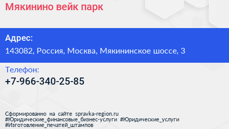 Мякинино, вейк-парк по адресу 143082, Россия, Москва, Мякининское шоссе, 3 в дальнейшем Организация, размещена в следующих категориях: