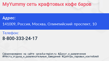 MyYummy, сеть крафтовых кофе-баров по адресу 141009, Россия, Москва, Олимпийский проспект, 10 в дальнейшем Организация, размещена в следующих категориях: