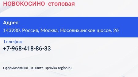 НОВОКОСИНО+, столовая по адресу 143930, Россия, Москва, Носовихинское шоссе, 26 в дальнейшем Организация, размещена в следующих категориях: