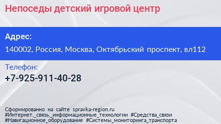 Непоседы, детский игровой центр по адресу 140002, Россия, Москва, Октябрьский проспект, вл112 в дальнейшем Организация, размещена в следующих категориях: