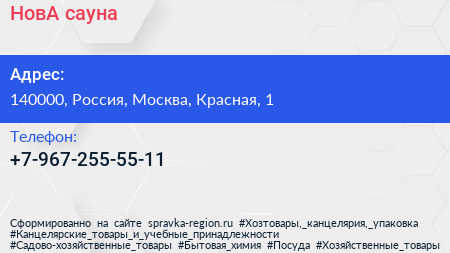 НовА, сауна по адресу 140000, Россия, Москва, Красная, 1 в дальнейшем Организация, размещена в следующих категориях: