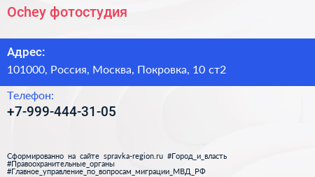 Ochey, фотостудия по адресу 101000, Россия, Москва, Покровка, 10 ст2 в дальнейшем Организация, размещена в следующих категориях: