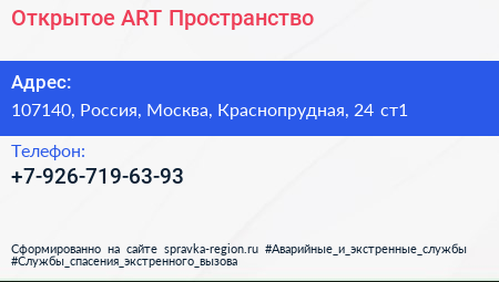 Открытое ART Пространство по адресу 107140, Россия, Москва, Краснопрудная, 24 ст1 в дальнейшем Организация, размещена в следующих категориях:
