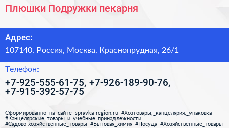 Плюшки-Подружки, пекарня по адресу 107140, Россия, Москва, Краснопрудная, 26/1 в дальнейшем Организация, размещена в следующих категориях: