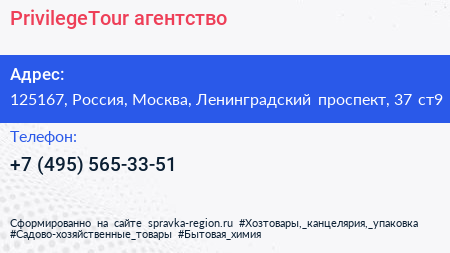 PrivilegeTour, агентство по адресу 125167, Россия, Москва, Ленинградский проспект, 37 ст9 в дальнейшем Организация, размещена в следующих категориях: