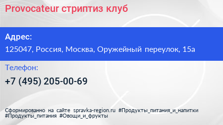 Provocateur, стриптиз-клуб по адресу 125047, Россия, Москва, Оружейный переулок, 15а в дальнейшем Организация, размещена в следующих категориях:
