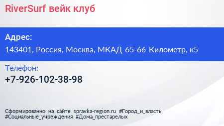 RiverSurf, вейк-клуб по адресу 143401, Россия, Москва, МКАД 65-66 Километр, к5 в дальнейшем Организация, размещена в следующих категориях: