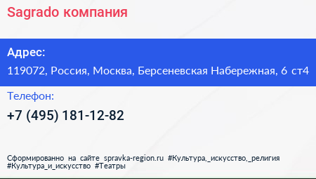 Sagrado, компания по адресу 119072, Россия, Москва, Берсеневская Набережная, 6 ст4 в дальнейшем Организация, размещена в следующих категориях: