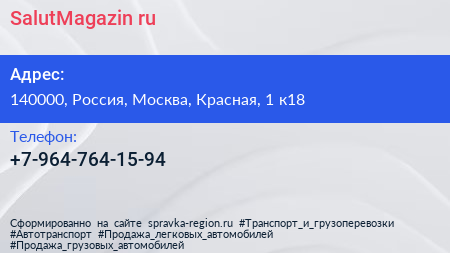 SalutMagazin.ru по адресу 140000, Россия, Москва, Красная, 1 к18 в дальнейшем Организация, размещена в следующих категориях: