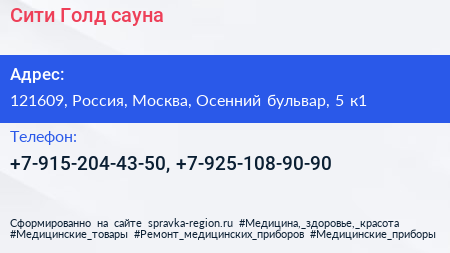 Сити-Голд, сауна по адресу 121609, Россия, Москва, Осенний бульвар, 5 к1 в дальнейшем Организация, размещена в следующих категориях: