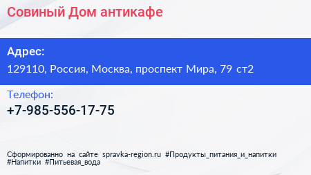 Совиный Дом, антикафе по адресу 129110, Россия, Москва, проспект Мира, 79 ст2 в дальнейшем Организация, размещена в следующих категориях: