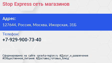 [Stop] Express, сеть магазинов по адресу 127644, Россия, Москва, Ижорская, 31Б в дальнейшем Организация, размещена в следующих категориях: