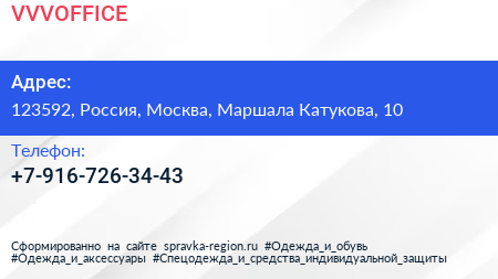 VVVOFFICE по адресу 123592, Россия, Москва, Маршала Катукова, 10 в дальнейшем Организация, размещена в следующих категориях: