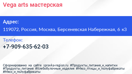 Vega-arts, мастерская по адресу 119072, Россия, Москва, Берсеневская Набережная, 6 к3 в дальнейшем Организация, размещена в следующих категориях: