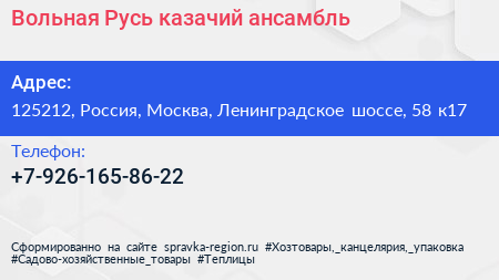 Вольная Русь, казачий ансамбль по адресу 125212, Россия, Москва, Ленинградское шоссе, 58 к17 в дальнейшем Организация, размещена в следующих категориях: