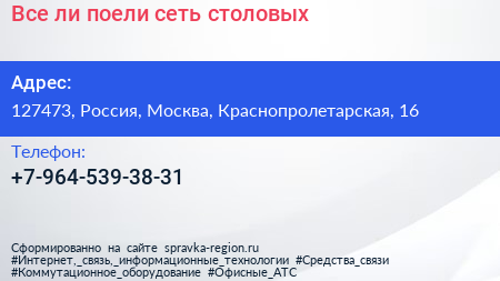 Все ли поели?, сеть столовых по адресу 127473, Россия, Москва, Краснопролетарская, 16 в дальнейшем Организация, размещена в следующих категориях: