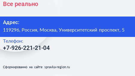 Все реально по адресу 119296, Россия, Москва, Университетский проспект, 5 в дальнейшем Организация, размещена в следующих категориях: