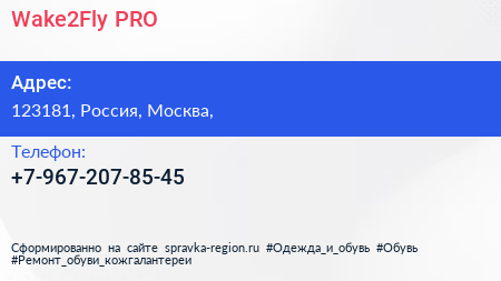 Wake2Fly-PRO по адресу 123181, Россия, Москва, в дальнейшем Организация, размещена в следующих категориях: