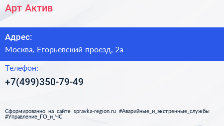 Арт-Актив по адресу Москва, Егорьевский проезд, 2а в дальнейшем Организация, размещена в следующих категориях: