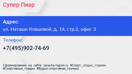 Супер Пиар по адресу ул. Наташи Ковшовой, д. 14, стр.2, офис 3 в дальнейшем Организация, размещена в следующих категориях: