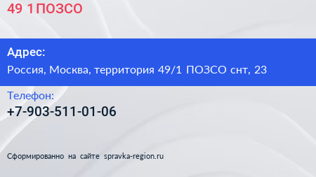 №49/1 ПОЗСО по адресу Россия, Москва, территория 49/1 ПОЗСО снт, 23 в дальнейшем Организация, размещена в следующих категориях: