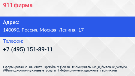 911, фирма по адресу 140090, Россия, Москва, Ленина, 17 в дальнейшем Организация, размещена в следующих категориях: