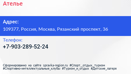 Ателье по адресу 109377, Россия, Москва, Рязанский проспект, 36 в дальнейшем Организация, размещена в следующих категориях: