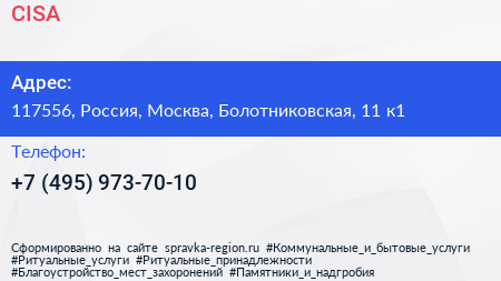 CISA по адресу 117556, Россия, Москва, Болотниковская, 11 к1 в дальнейшем Организация, размещена в следующих категориях: