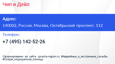 Чип и Дейл по адресу 140002, Россия, Москва, Октябрьский проспект, 112 в дальнейшем Организация, размещена в следующих категориях:
