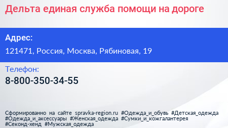 Дельта, единая служба помощи на дороге по адресу 121471, Россия, Москва, Рябиновая, 19 в дальнейшем Организация, размещена в следующих категориях: