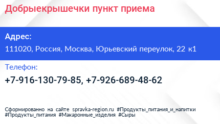 #Добрыекрышечки, пункт приема по адресу 111020, Россия, Москва, Юрьевский переулок, 22 к1 в дальнейшем Организация, размещена в следующих категориях: