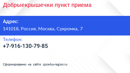 #Добрыекрышечки, пункт приема по адресу 141018, Россия, Москва, Сукромка, 7 в дальнейшем Организация, размещена в следующих категориях: