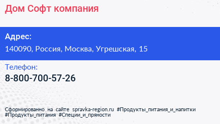 Дом Софт, компания по адресу 140090, Россия, Москва, Угрешская, 15 в дальнейшем Организация, размещена в следующих категориях: