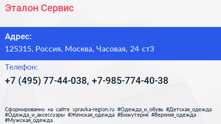 Эталон-Сервис по адресу 125315, Россия, Москва, Часовая, 24 ст3 в дальнейшем Организация, размещена в следующих категориях: