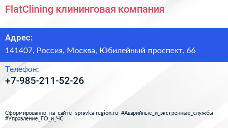 FlatClining, клининговая компания по адресу 141407, Россия, Москва, Юбилейный проспект, 66 в дальнейшем Организация, размещена в следующих категориях: