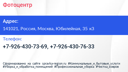 Фотоцентр по адресу 141021, Россия, Москва, Юбилейная, 35 к3 в дальнейшем Организация, размещена в следующих категориях:
