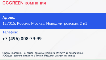 GGGREEN, компания по адресу 127015, Россия, Москва, Новодмитровская, 2 к1 в дальнейшем Организация, размещена в следующих категориях: