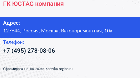 ГК ЮСТАС, компания по адресу 127644, Россия, Москва, Вагоноремонтная, 10а в дальнейшем Организация, размещена в следующих категориях: