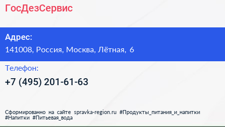 ГосДезСервис по адресу 141008, Россия, Москва, Лётная, 6 в дальнейшем Организация, размещена в следующих категориях: