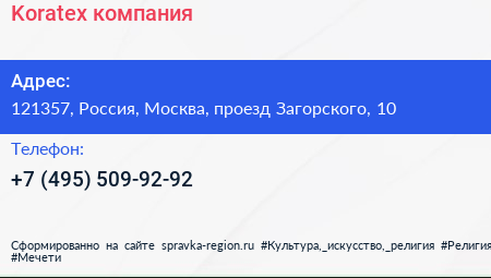 Koratex, компания по адресу 121357, Россия, Москва, проезд Загорского, 10 в дальнейшем Организация, размещена в следующих категориях: