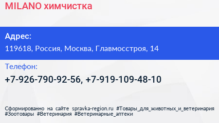 MILANO, химчистка по адресу 119618, Россия, Москва, Главмосстроя, 14 в дальнейшем Организация, размещена в следующих категориях: