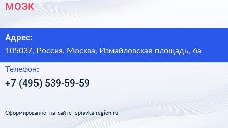 МОЭК по адресу 105037, Россия, Москва, Измайловская площадь, 6а в дальнейшем Организация, размещена в следующих категориях: