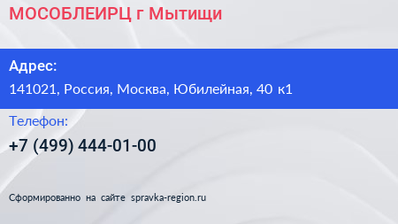 МОСОБЛЕИРЦ, г. Мытищи по адресу 141021, Россия, Москва, Юбилейная, 40 к1 в дальнейшем Организация, размещена в следующих категориях: