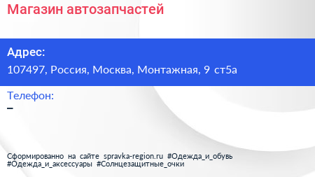 Магазин автозапчастей по адресу 107497, Россия, Москва, Монтажная, 9 ст5а в дальнейшем Организация, размещена в следующих категориях: