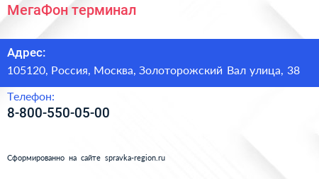 МегаФон, терминал по адресу 105120, Россия, Москва, Золоторожский Вал улица, 38 в дальнейшем Организация, размещена в следующих категориях:
